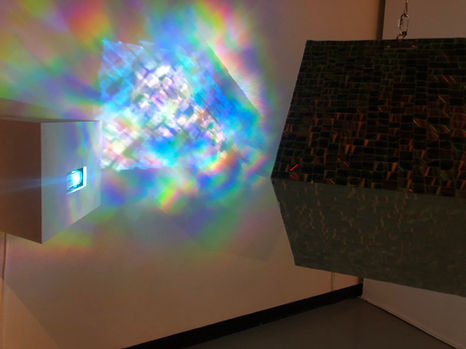Verbatim is a sculptural installation comprised of projection and recycled CD pieces that comments on our ever-changing relationship with ourselves because of technology. Just as CDs spun around our Walkmans, the world also cycled, updated, and advanced. This new digital world was no longer surrounding us but rather existed in the palm of our hands. Confined in this rectangular box were fabricated personas, compressed emotions, and the constant passing of judgment. This began to control our paradigms and influence us to view ourselves and others in an ultimately negative way. The CD’s colorful and reflective attributes create an opportunity to recognize ourselves and others in an alternate experience outside that box of clicks, scrolls and double taps.